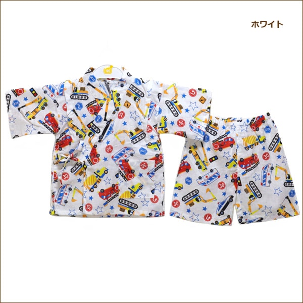 男の子 乗り物柄 甚平 100cm 110cm 120cm 130cm ホワイト ネイビー 682519 メール便は送料無料♪
