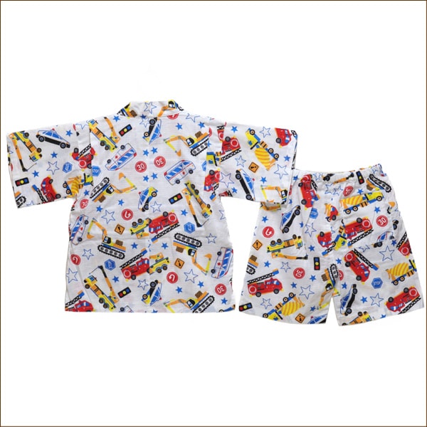子供服 子供用 子供 子ども こども 男の子 男子 男児 ボーイズ キッズ ジュニア 綿100% コットン 甚平 甚平スーツ じんべい 子供甚平 こども甚平 浴衣 和服 和装 羽織 上下セット セット 半袖 パンツ ズボン トップス ボトムス ルームウェア パジャマ ナイトウェア 部屋着 花火 お祭り 花火大会 夕涼み会 お泊り会 お泊り プレゼント 贈り物 ギフト 総柄 プリント 乗り物 働く車 パトカー 救急車 消防車 ユンボ クレーン車 トラック 星 マルチカラー ホワイト ネイビー 白 紺 小学生 小学校 夏 夏服 夏物 カッコいい おしゃれ xbbz1 ※お祭りはもちろん、夕涼みやお家でのゆったりウエアとしてもGOOD!夏の定番アイテムの甚平上下セット♪